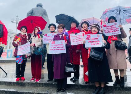 На остановке у памятника В.И. Ленину выступающие отметили, что основы антифашистской борьбы на философском, социально-политическом и историческом уровне были заложены еще вождем мирового пролетариата, прежде всего, в его работе "Империализм, как высшая стадия капитализма" и, что Великая Победа Советского народа в Великой Отечественной войне стала возможна благодаря высокой сплоченности Советского общества на основе патриотизма и идентификации советских людей, как строителей самого справедливого общества, социалистической организации социально-экономической сферы.