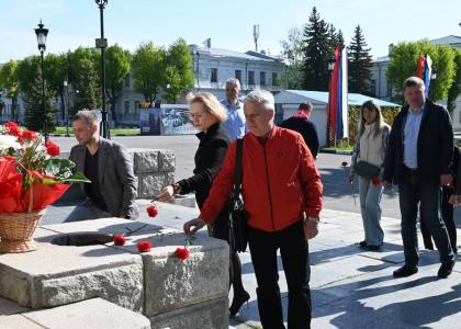 У памятника Карлу Марксу на эспланаде, соединяющей площади В.И. Ленина и 100-летия со дня его рождения, состоялось торжественное возложение цветов. В выступлениях звучали слова о великом вкладе Маркса в науку, его неоценимых трудах — «Капитале» и «Манифесте Коммунистической партии», — которые и сегодня служат компасом для всех, кто борется за общество социальной справедливости.