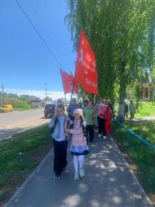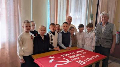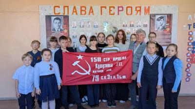 6 мая первый секретарь Знаменского райкома КПРФ А.В. Ерохин и член областной КРК А.Ф. Рей посетили Воронцовский филиал МБОУ «Знаменская СОШ» им. Героя России В. Гриднева и вместе с учащимися 6-го и 2-го классов и их классными руководителями изготовили копию Знамени Победы.