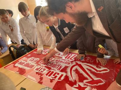Так, 30 апреля секретарь Тамбовского ОК ЛКСМ РФ, депутат Тамбовской городской Думы Г. Назаров провёл урок в рамках всероссийской акции «Знамя нашей Победы» в 7-м классе МАОУ «Лицей № 29» г. Тамбова. На уроке дети узнали о ключевых этапах Великой Отечественной войны, о Победе и о его главном символе – Знамени Победы. Также во время урока дети самостоятельно изготовили копию Знамени Победы по трафарету, подготовленному коммунистами. Учащиеся были вовлечены в процесс и по очереди всем классом приложили руку к процессу создания копии.