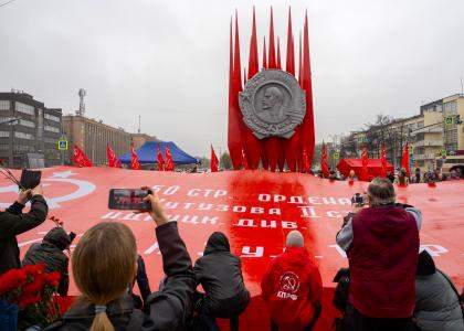 Представителей Администрации города и области на мероприятии не было. Но его проведению никто не помешал. Хотя совсем недавно, 22 апреля, в день 155-летия со дня рождения Ленина, за использование при возложении цветов к памятнику участниками акции трёх красных флагов – копии Знамени Победы, флага с изображением Ленина и флага КПРФ Виктор Зырянов был привлечён к административной ответственности. А шесть коммунистов (два секретаря обкома, два секретаря горкома и председатель старейшин) всё ещё ждут решения суда.