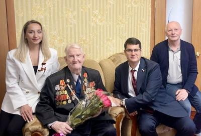 Коммунисты поздравили Алексея Ивановича с наступающим Днем Победы, пожелали здоровья и отличного настроения, вручили цветы и подарки.