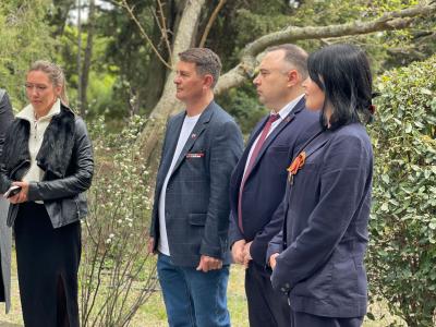 Коммунисты Крыма возложили цветы к восстановленному и отремонтированному памятному знаку, посвященному 50-летию Победы, который установлен в пгт. Форос. На протяжении последних лет монумент находился в плачевном состоянии. В преддверии 9 Мая совместным усилиям памятный знак был приведен в достойное состояние, что подчеркивает важность сохранения исторической памяти. Коммунисты вместе с руководством и сотрудниками возложили корзину красных гвоздик и обсудили историю этого памятного места.