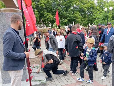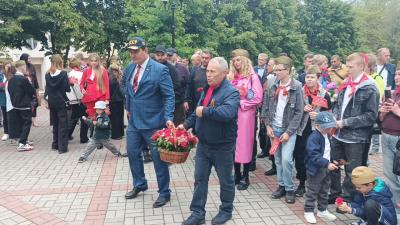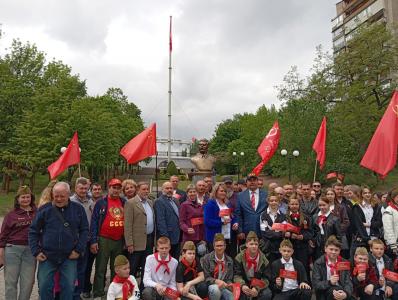 Участники торжественного мероприятия возложили цветы к монументу Иосифа Сталина, после чего на площади у монумента Сталину состоялся торжественный прием в Пионерскую организацию Запорожской области новых членов - учащихся школы N 9 гвс. Мелитополя им. Юрия Гагарина.