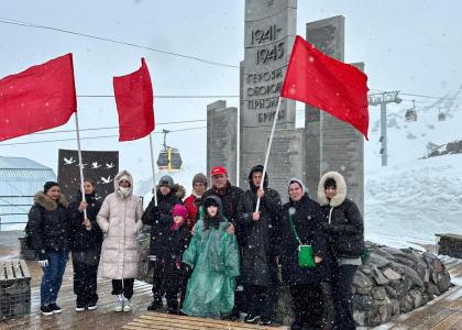Несмотря на то, что Эльбрус встретил участников патриотической акции далеко не майской погодой – ледяным ветром, снегом и минусовой температурой, - коммунисты и присоединившиеся к ним ребята из комсомольской и пионерской организаций Нальчика и Эльбрусского района, а также не оставшиеся в стороне от грандиозного действа находившиеся в этот момент на станции Гарабаши гости республики, приступили к выполнению порученного им дела со стойкостью, достойной наследников победителей. И в тот момент, когда масштабная копия Знамени Победы была развернута, когда на снегах Эльбруса, который благодаря самоотверженности и героизму советских солдат не покорился Гитлеру и его фашистской армаде, заалел стяг Победы, снежный буран затих и наступила тишина.