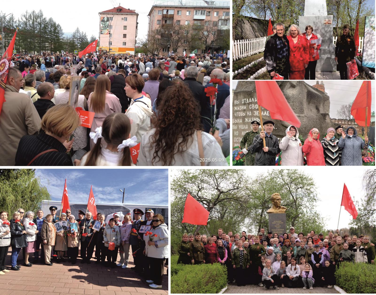 Также многие активисты КПРФ вместе с представителями левых движений собрались у мемориалов памяти, памятников погибшим солдатам, чтобы напомнить: Победа была бы невозможна без объединяющих идей социализма. Более половины солдат и офицеров нашей армии были коммунистами и комсомольцами. Именно они вели за собой в бой товарищей, своим примером вдохновляя на подвиг.