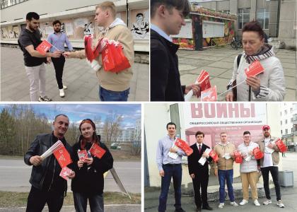 Уже традиционной стала акция КПРФ «Символ Победы каждому!». Коммунисты выходят на улицы городов, раздавая людям атрибутику с копией Знамени Победы. Это стало особенно актуально на фоне недавно принятого в областном парламенте по инициативе КПРФ закона «О Знамени Победы».