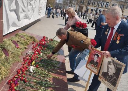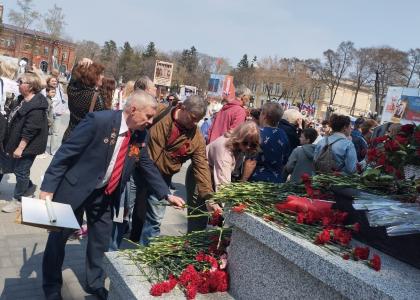 Вместе с горожанами коммунисты и комсомольцы шагали в колонне Бессмертного полка, а затем возложили цветы к памятнику воинам-амурцам на площади Победы.