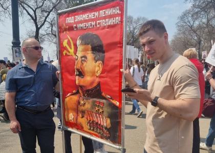 Благовещенцы активно высказывали коммунистам слова поддержки, активно фотографировались на фоне портрета И.В. Сталина.