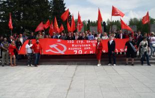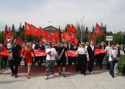 Колонну КПРФ на митинге, посвященном празднованию юбилея Великой Победы, возглавляли первый секретарь Новосибирского обкома КПРФ Анатолий Локоть, секретари обкома Владимир Карпов, Алексей Русаков, депутаты Законодательного собрания Николай Машкарин, Дмитрий Макаров, Виталий Быков, руководитель регионального отделения ВЖС «Надежда России» Оксана Корякина, депутат Совета депутатов города Новосибирска Георгий Андреев. Впереди несли увеличенную копию Знамени Победы.
