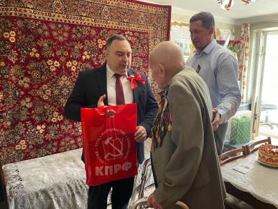 По поручению Геннадия Андреевича Зюганова – Председателя ЦК КПРФ, чей отец воевал в героическом городе Севастополе, первый секретарь Комитета КРО КПРФ – Сергей Богатыренко, руководитель КРО «Дети Войны» - Игорь Тараненко и руководитель КРО ЛКСМ РФ – Екатерина Евсеенкова наградили Степана Михайловича памятными медалями 80-летия Победы и 80-летия освобождения Республики Крым и г.Севастополя, вручили подарки, пожелали крепкого здоровья и выразили огромную благодарность за мирное небо над головой, которое есть у нас сейчас.