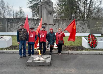 Коммунисты Кирилловского отделения КПРФ возложили цветы к памятнику "Родина-Мать". Одна из самых активных ячеек областного отделения, возглавляемая Владимиром Черепановым, широко отметила праздничную дату, поздравив десятки пожилых людей.