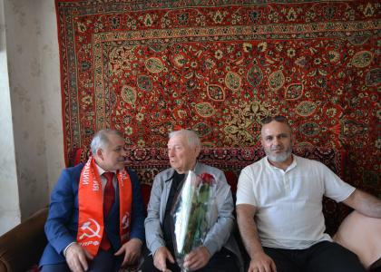 Вместе с депутатом поздравить ветерана пришли члены Дагестанского рескома КПРФ Наира Гаджиханова и Надыр Асланов.