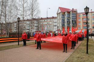 Но настоящий ажиотаж вызвала другая копия Знамени Победы. Коммунисты пронесли торжественным строем гигантский красный стяг — увеличенное в 10 раз Знамя Победы. Депутатами от партии КПРФ и её активные члены возложили цветы к Вечному огню у мемориала «Наказ Матери» и поздравили земляков с Днём Великой Победы. Победы в борьбе за нашу с вами свободу!