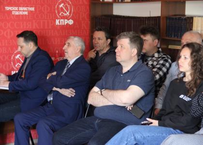 С докладами выступили члены КПРФ и комсомольцы региона. По видеосвязи на конференции работал Колпашевский горком. В мероприятии принял участие Первый секретарь Томского обкома КПРФ А.Г. Петров.