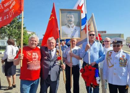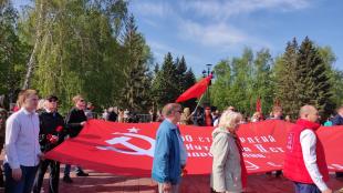 В Барнауле коммунисты, комсомольцы, представители союзных организаций и движений 9 Мая возложили цветы к Мемориалу Славы в память о погибших в годы Великой Отечественной войны. Особенностью мероприятия стала увеличенная копия Знамени Победы, которую коммунисты пронесли во время возложения цветов.