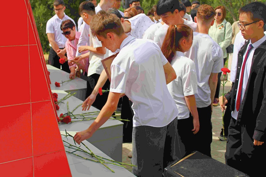 Ставшее традиционным мероприятие проходило в сквере у мемориала «У войны не женское лицо», воздвигнутом пять лет назад при спонсорской помощи КРО КПРФ. На мраморных плитах памятника увековечены имена 94 женщин Калмыкии, павших на полях сражений в годы Великой Отечественной войны.