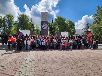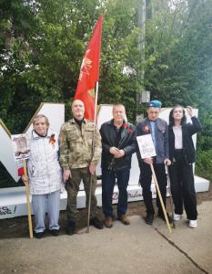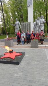При проведении праздничных мероприятий наша группа своим красным цветом знамени Победы выделялась среди всех собравшихся на площади перед мемориалом.