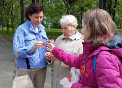 Студенты раздавали красные банты - частички красного знамени Великой Победы.