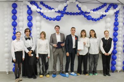 Первый секретарь Удмуртского рескома КПРФ Иван Гвоздак вручил образовательному центру копию Знамени Победы.