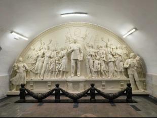 Первоначальный барельеф был утрачен при строительстве пересадочного узла между «фиолетовой» и «кольцевой» линиями. Специалисты восстановили композицию по архивным фотографиям и документам.