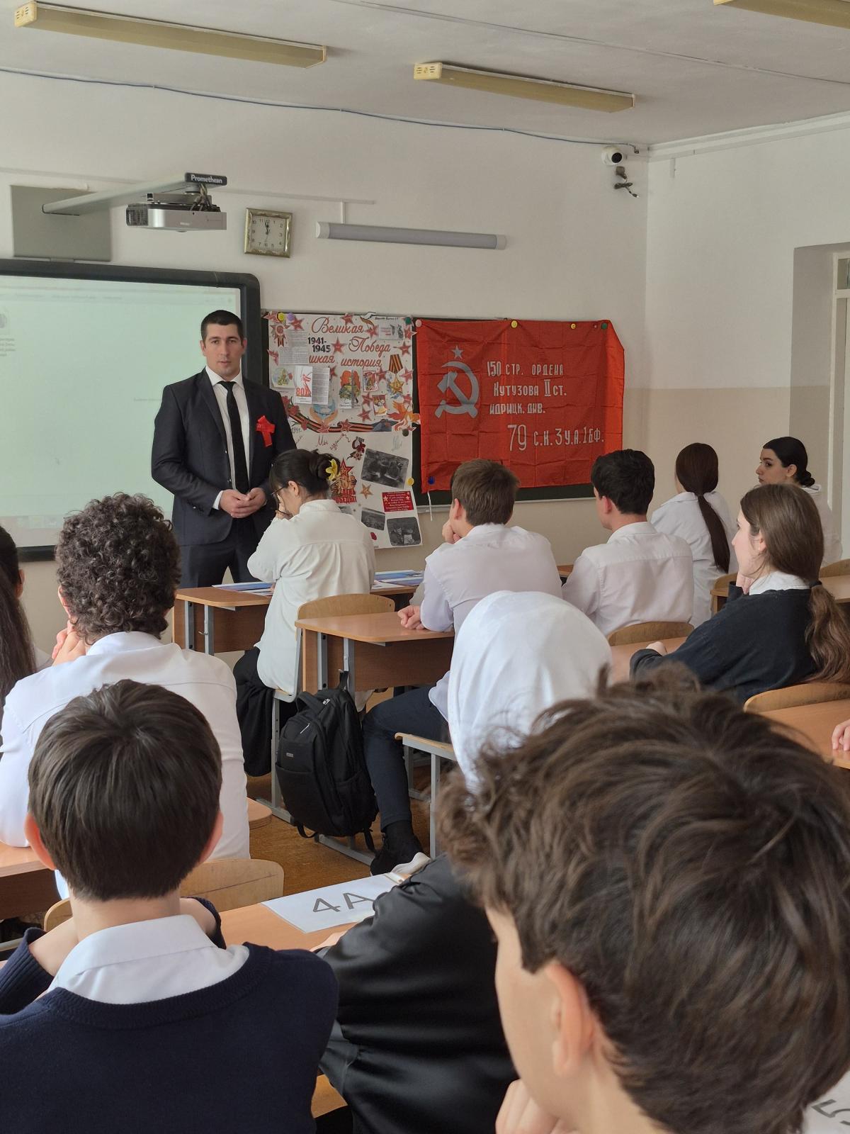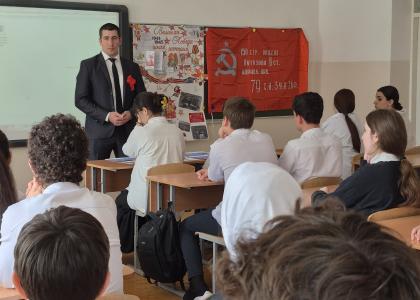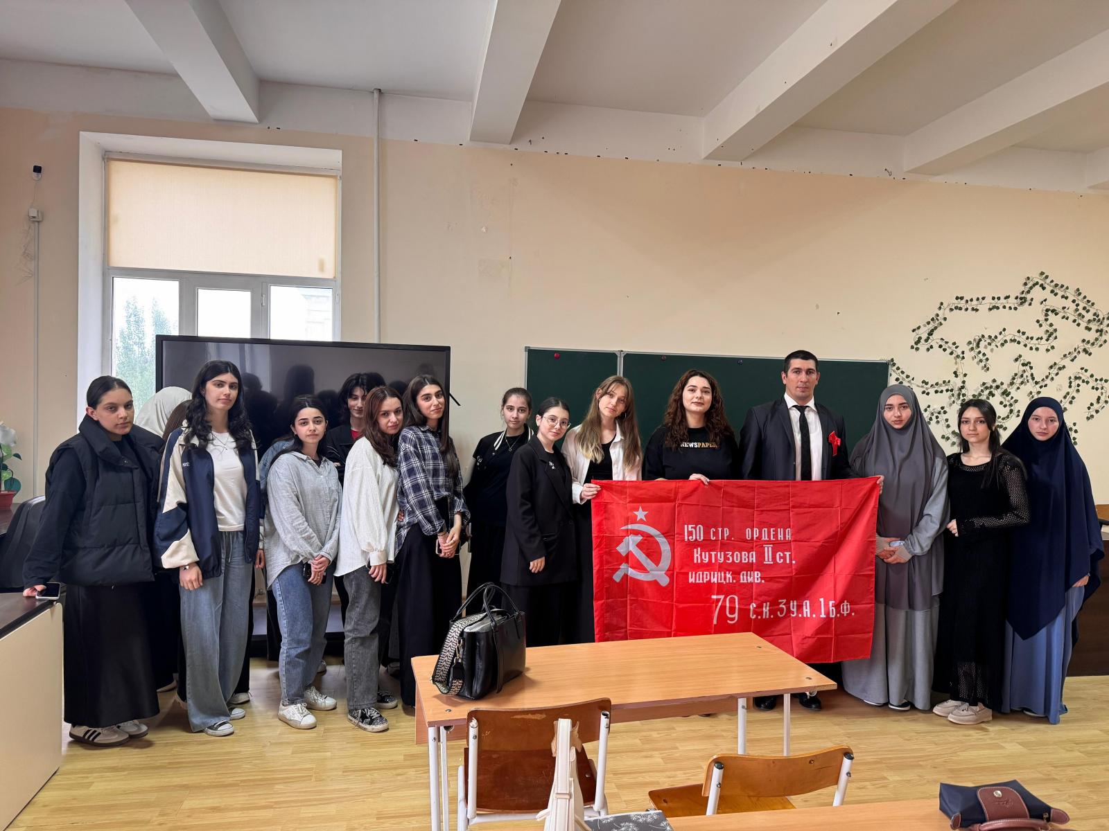 15 мая Дагестанское республиканское отделение ЛКСМ РФ во главе с первым секретарем Артёмом Гаджитаевым организовало патриотические уроки в рамках проекта “Знамя Нашей Победы”, посвящённые 80-летию Великой Победы. Уроки прошли с учениками 9-го класса МБОУ “Гимназия 56” г.Махачкалы и со студентами “Дагестанского Профессионального-педагогического колледжа” г.Каспийска. Встречу со студентами организовала активистка ДРО ЛКСМ РФ и преподаватель данного колледжа Рамилла Джабраилова.