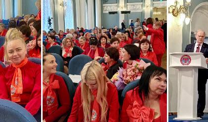 Утвердив рабочие органы, приступили к выполнению намеченной программы. С приветственным словом выступил Председатель ЦК КПРФ Г.А. Зюганов. В президиуме — легендарная М.В. Рохлина, ветеран Великой Отечественной войны. В свой почтенный возраст, а ей 100 лет, она сохранила светлый ум, великолепное изложение мыслей и потрясающее женское обаяние.