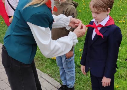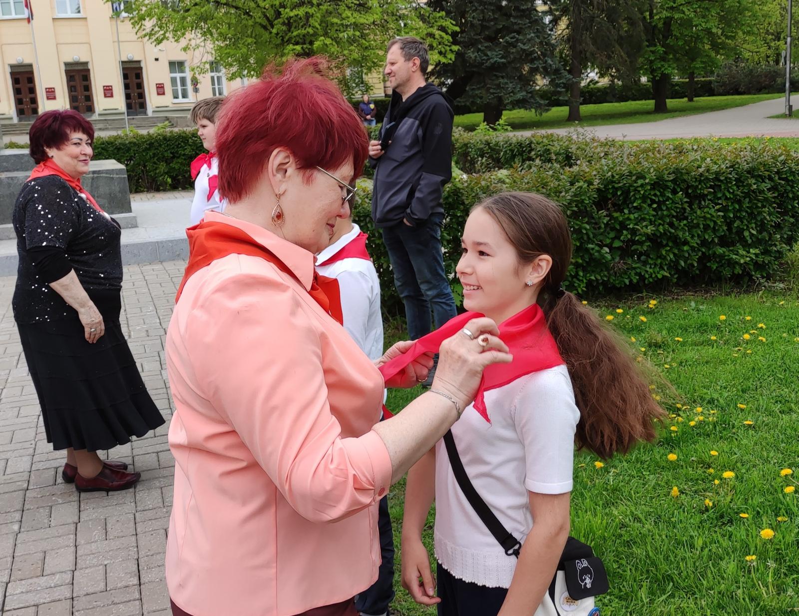 После произнесения ребятами торжественной клятвы, старшие пионервожатые времён СССР торжественно повязали им галстуки. Ещё один новгородский школьник был принят в ряды октябрят.