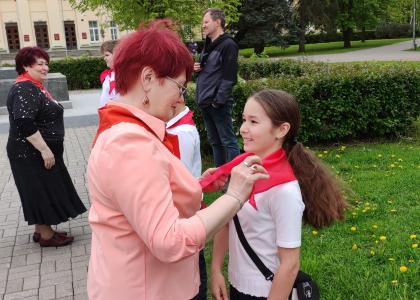 «В этот знаменательный день вы вступаете в ряды пионеров. Запомните и цените его, рассказывайте о нём будущим поколениям. Главное, чтобы вы не боялись достигать целей. А мы, как взрослые, всегда готовы услышать вас, помочь. Поверьте, мы все хотим, чтобы вы жили в этой стране и в этой земле мирно, дружно, сильно и смело!» - напутствовал ребят член городского комитета КПРФ Игорь Ковалев.