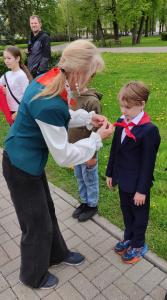 После произнесения ребятами торжественной клятвы, старшие пионервожатые времён СССР торжественно повязали им галстуки. Ещё один новгородский школьник был принят в ряды октябрят.