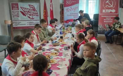 Всем ребятам были вручены сладкие подарки. А закончился праздник дружеским чаепитием в актовом зале Новгородского областного отделения КПРФ.