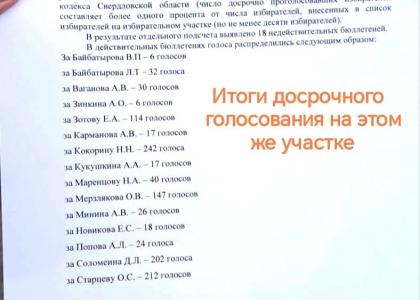 Типичная картина при досрочном голосовании - за кандидатов от ЕР сотни голосов, за всех остальных - единицы. Разница в десятки раз. При этом в сам день голосования единороссы продули нашим коммунистам: Беляеву, Байбатырову, Маренцевой, Крыловой и Беляевой.