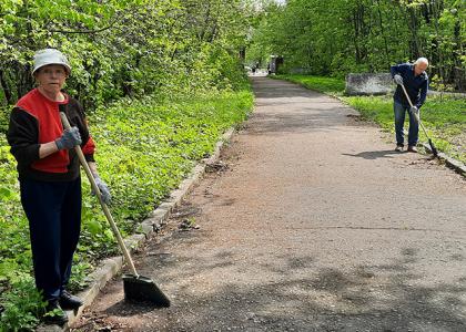 Была выметена главная аллея, счищены побеги сорняков с тротуара, скошена подросшая трава на месте захоронения. Особенно много мусора было на территории, прилегающей к остановке общественного транспорта.