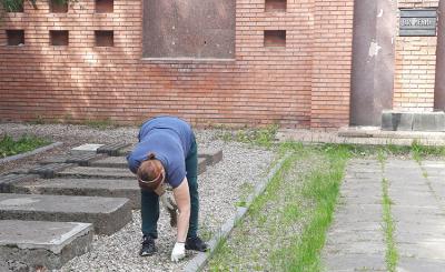 Была выметена главная аллея, счищены побеги сорняков с тротуара, скошена подросшая трава на месте захоронения. Особенно много мусора было на территории, прилегающей к остановке общественного транспорта.