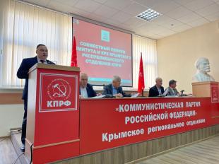 С докладом выступил первый секретарь Комитета КРО КПРФ – Сергей Богатыренко. Ключевым тезисом доклада Сергея Богатыренко стало обсуждение значимости развернутой массовой общественно-политической акции «Народный референдум». Особое внимание было уделено необходимости активного участия коммунистов в организации народного голосования, а также важности разъяснения его смысла и значения жителям Крыма. Докладчик подчеркнул, что одной из приоритетных задач является пропаганда разработанной Коммунистической партией Программы Победы КПРФ, которая включает в себя комплекс предложений, направленных на возрождение и развитие страны, а также защиту коренных интересов трудового народа.