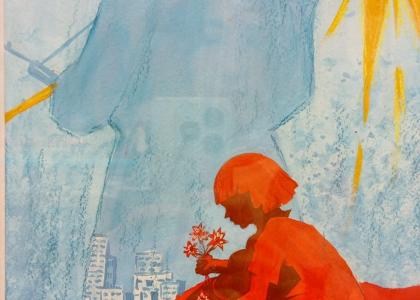Так, ученица 6 «Г» класса школы №13 Великого Новгорода Александра Галинач представила рисунок «Ради жизни на Земле», который был признан лучшей работой в данной номинации.
