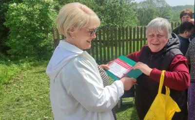 Сразу после пленума Ольга Ефимова вручила памятную медаль к 80-летию Победы представителю «Детей войны» Екатерине Прокофьевне Басковой, проживающей в деревне Соколье, после чего провела акцию в поддержку «Народного референдума» среди её односельчан.