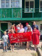 Перед отъездом коммунисты и комсомольцы во главе с первым секретарём Воронежского обкома комсомола Вячеславом Смирновым вместе с ребятами изготовили знамя Победы. Теперь в этом доме будет своё знамя Победы!