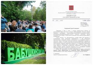 В своем депутатском запросе Парфенов указал на необходимость отказаться от планов реорганизации и принять меры, направленные на сохранение ПКиО «Бабушкинский»!
