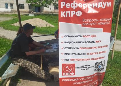 Акцентируем внимание жителей автономии, что мероприятия, посвящённые Народному референдуму, будут продолжаться всё лето. Задача коммунистов: собрать не меньше подписей, чем голосов, отданных избирателями ЕАО КПРФ на предыдущих выборах в Законодательное Собрание области и Госдуму РФ. И эта задача обязательно будет успешно выполнена.