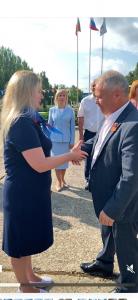 За добросовестный труд, большой вклад в дело патриотического воспитания современной молодёжи, за сохранение и развитие лучших традиций международного лагеря "Артек", а также за активную помощь, оказанную в сборе гуманитарных грузов для жителей Курской области, пострадавших в ходе агрессии ВСУ, Олег Слюсаренко торжественно вручил руководителю детско-юношеского лагеря "Красная Гвоздика" Лилии Швецовой памятную медаль ЦК КПРФ, посвященную 80-летию Победы Советского народа в Великой Отечественной войне.