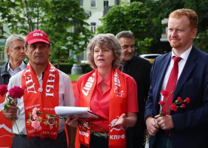 В торжественной обстановке были зачитаны приветствия от находящегося в вынужденной иммиграции члена ЦК КПРФ В.И. Бессонова, коммунистических организаций Белоруссии, Чехии и Турции.