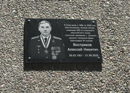 В Краснодаре прошла торжественная церемония открытия памятной доски в честь Алексея Никитича Вострикова – легендарного летчика, коммуниста-депутата городской Думы, ушедшего из жизни три года назад.