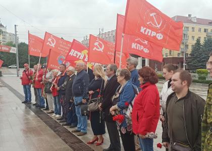 В день 84-летия со дня начала Великой Отечественной войны коммунисты и комсомольцы Брянской области организовали и провели траурные мероприятия. Рано утром активисты КПРФ и ЛКСМ РФ встретили “самый длинный день” памятной акцией «Свеча памяти», а уже днём на площади Партизан состоялось возложение цветов к Вечному огню. Эти акции – знак глубочайшего уважения к героям, павшим в боях за свободу нашей Родины, и напоминание о той страшной цене, которую заплатил советский народ за мирное небо над головой.