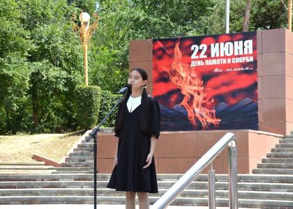 22 июня 1941 года началась Великая Отечественная война, длившаяся 1418 дней и ночей. Она унесла жизни 27 миллионов советских граждан. Память об этих событиях навсегда вписана в сердца поколений. Студентка колледжа искусств им. П. О. Чонкушова Кристина Надбитова прочитала отрывок из поэмы Роберта Рождественского «Реквием»: «Через года, через века,- помните!». Пронзительные строки, прозвучавшие у Вечного огня, возле огненной «картины» о войне, никого не оставили равнодушным», - сообщает интернет-газета «Степные вести».