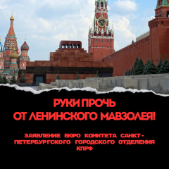 Мы призываем прекратить информационные инсинуации вокруг Мавзолея В.И. Ленина, убрать грязные руки от нашей великой революционной и советской истории, остановить потоки лжи против коммунистов прошлого и настоящего!