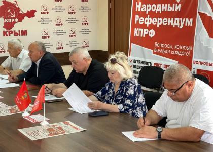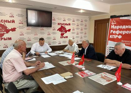 Состоялось Бюро Комитета Крымского рескома КПРФ. Коммунисты обсудили политический отчет ЦК КПРФ, ход Народного Референдума КПРФ, другие организационные вопросы.