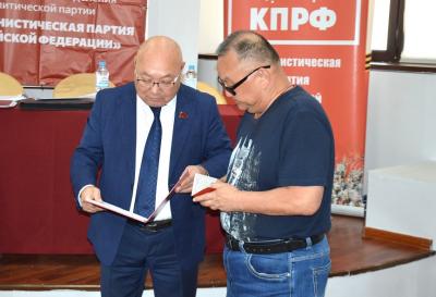 Открыл и вел конференцию первый секретарь Комитета КРО КПРФ Николай Нуров. Перед началом заседания по сложившейся традиции лидер коммунистов Калмыкии вручил партийный билет Джангру Дорджиеву – известному спортсмену, активному общественнику. Джангру Арашаевичу были подарены также книги по истории, изданные благодаря спонсорской помощи КПРФ.