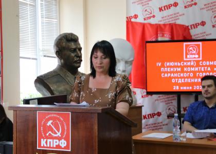 В Саранске прошел IV (июньский) совместный Пленум Комитета и Контрольно-ревизионной комиссии городского отделения КПРФ. В ходе встречи коммунисты обсудили актуальные проблемы и определили стратегию дальнейшей работы на ближайший период. В работе Пленума приняли участие секретари Мордовского рескома КПРФ, секретари первичных партийных отделений, депутаты-коммунисты и представители общественных организаций.