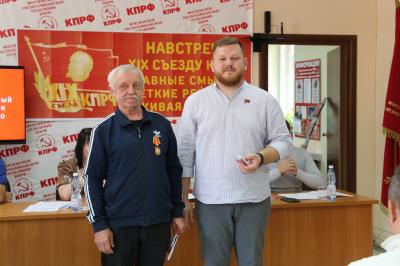 До начала обсуждения вопросов повестки дня по традиции состоялось вручение наград. Приветственный адрес в связи с юбилейным Днём рождения получил Роман Ледаков – молодой коммунист, отметивший 30-летие. Медалью Ломоносова за вклад в просвещение награждена Вера Фомичева. Медали в честь 80-летия Великой Победы вручены ветеранам партии Людмиле Пителиной и Александру Мельнику.